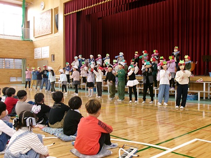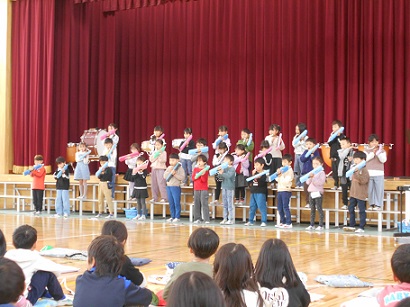 2校時に1,2,3年生、3校時に4,5,6年生が、それぞれ音楽発表会を行いました。