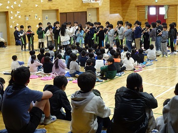これまで全校のリーダーとして活躍してくれた6年生も、下級生に温かく迎えられ、下級生からのおもてなしに、うれしいような照れくさそうな表情でした。