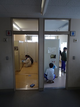 卒業まであとわずかとなってきた6年生。今日は、普段の掃除だけでは手が届きにくいトイレや家庭科室などの清掃活動に取り組んでくれました。